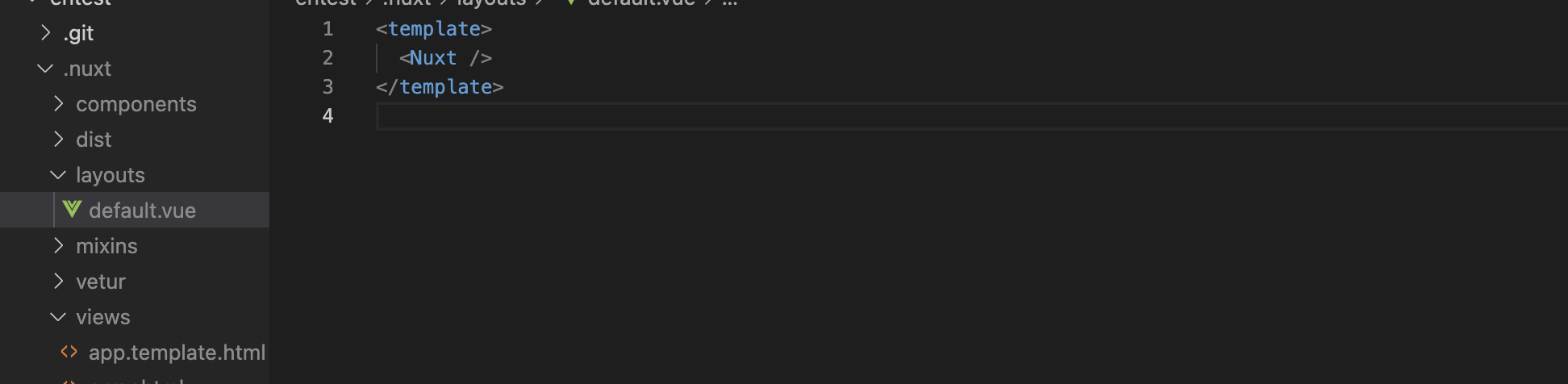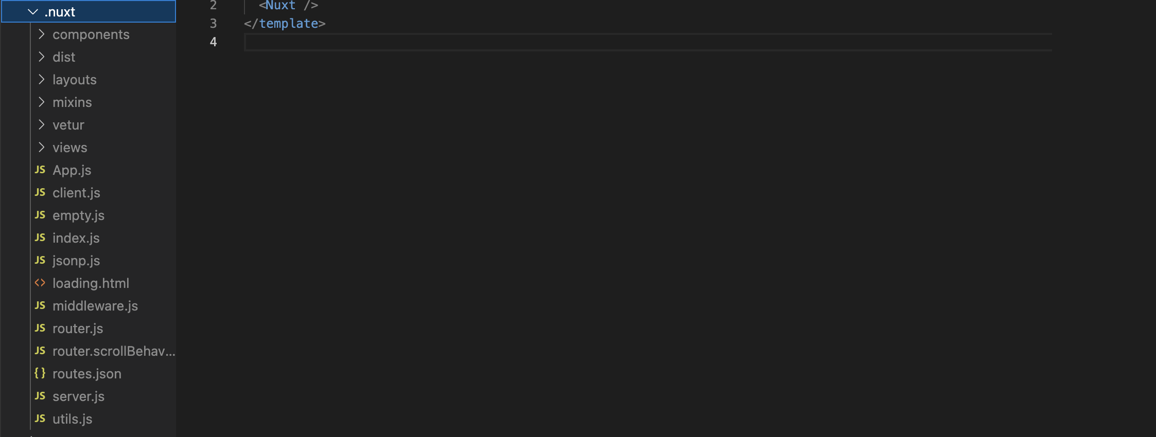 여기서 vue와 차이점이 있다면 .nuxt라는 디렉토리가 자동으로 생성되었다는 것.