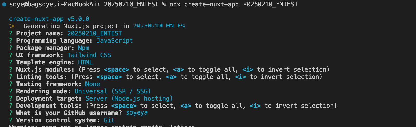 터미널에서 npx create-nuxt-app 프로젝트명