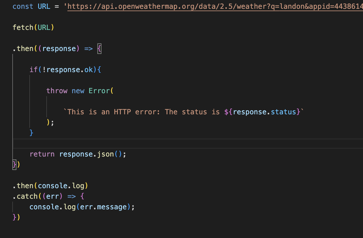 따라서 일반적인 fetch 요청은 두 개의 .then() 호출을 갖는다.