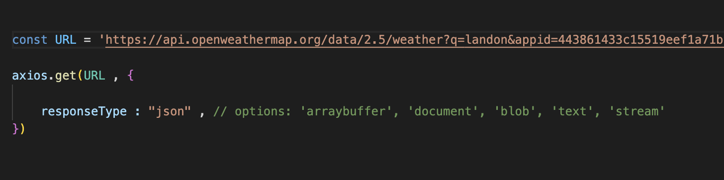 두번째 인자로 설정 옵션을 넘기지 않을 경우, 기본적으로 GET 요청을 생성한다.
