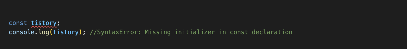 const 는 변수명을 선언하는것과 동시에 값을 할당해야한다.