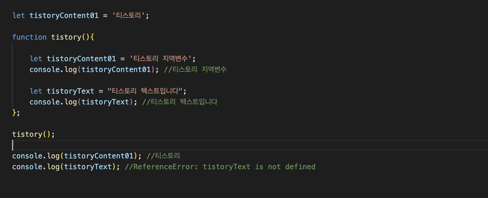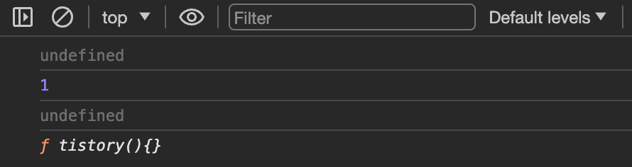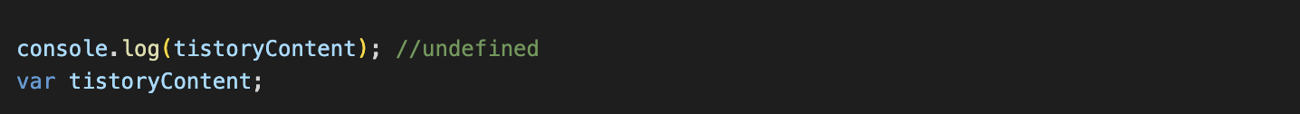 변수호이스팅의 발생으로 tistory 전역변수를 읽어내지 못하고 참조에러를 발생시킨다. 이것은 지역변수를 런타임보다 자바스크립트 엔진이 먼저 인지를 했기 때문에 발생하는 오류이다.