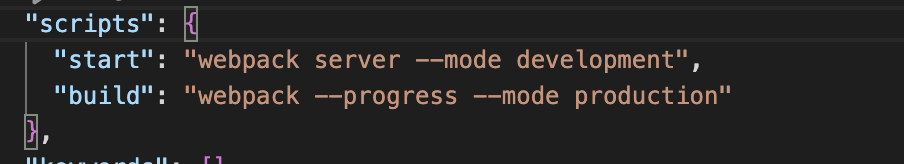 ( start명령어를 사용하면 webpack-dev-server가 실행된다는 의미, 편의상 모드는 개발모드로 설정, build는 production모드로 설정 )