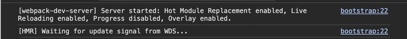개발자 도구 console 에서 웹팩이 설치되었음을 알 수 있다.